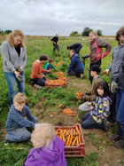 Les amapiens sont venus avec leurs enfants participer aux récoltes: pommes de terre, courges, carottes et betteraves.